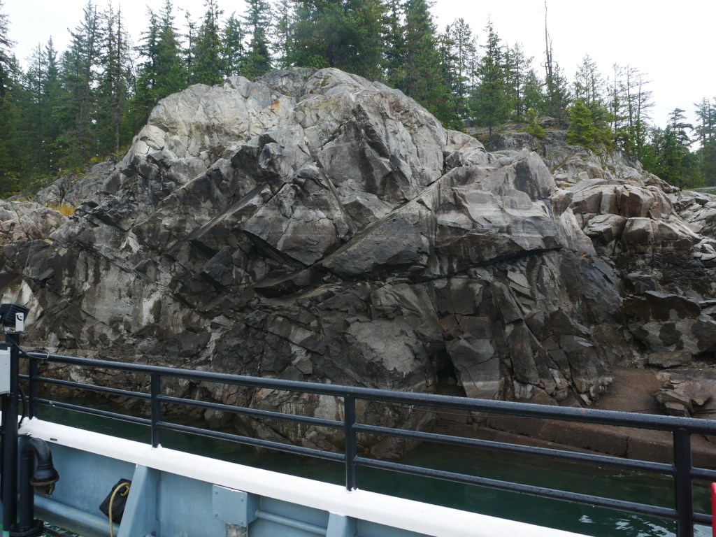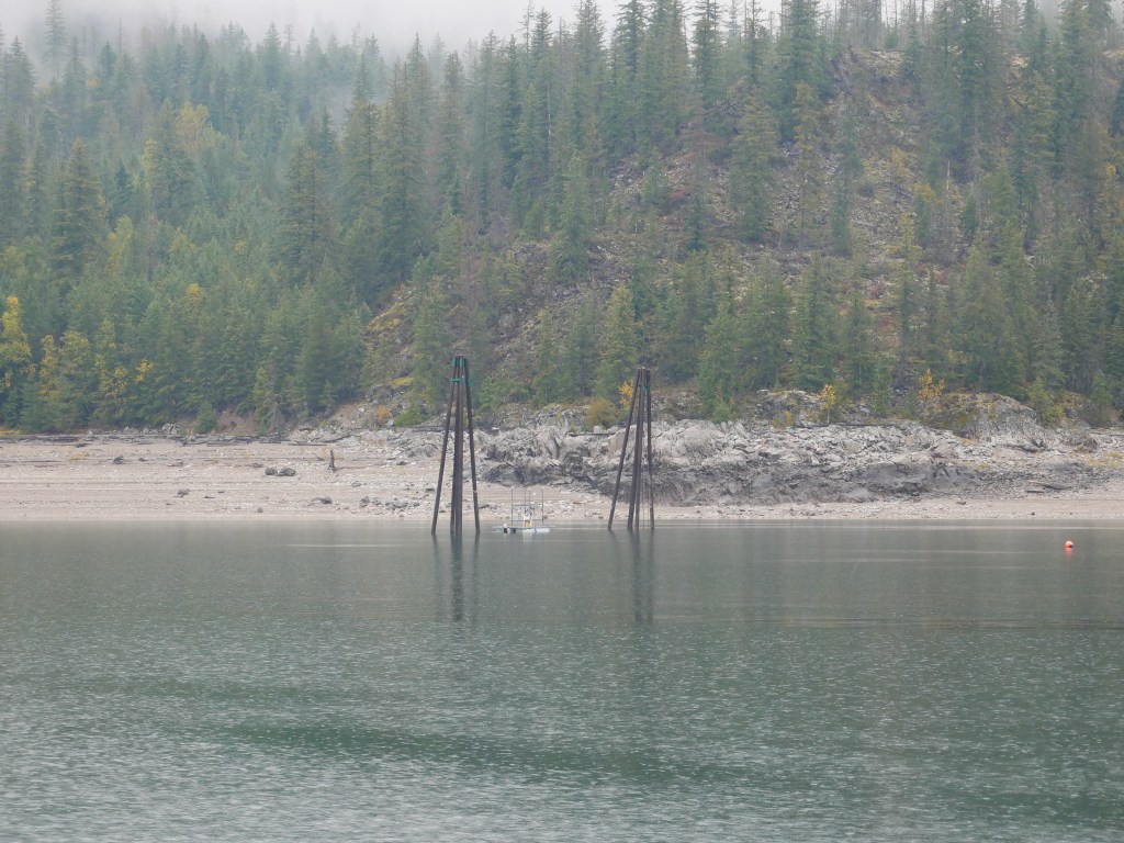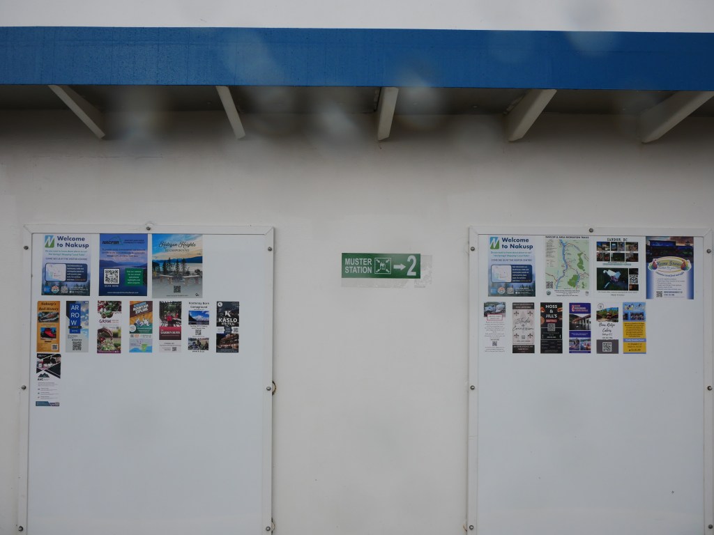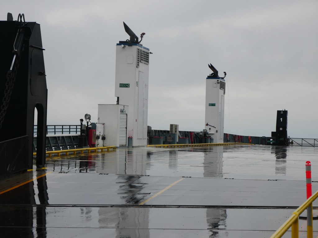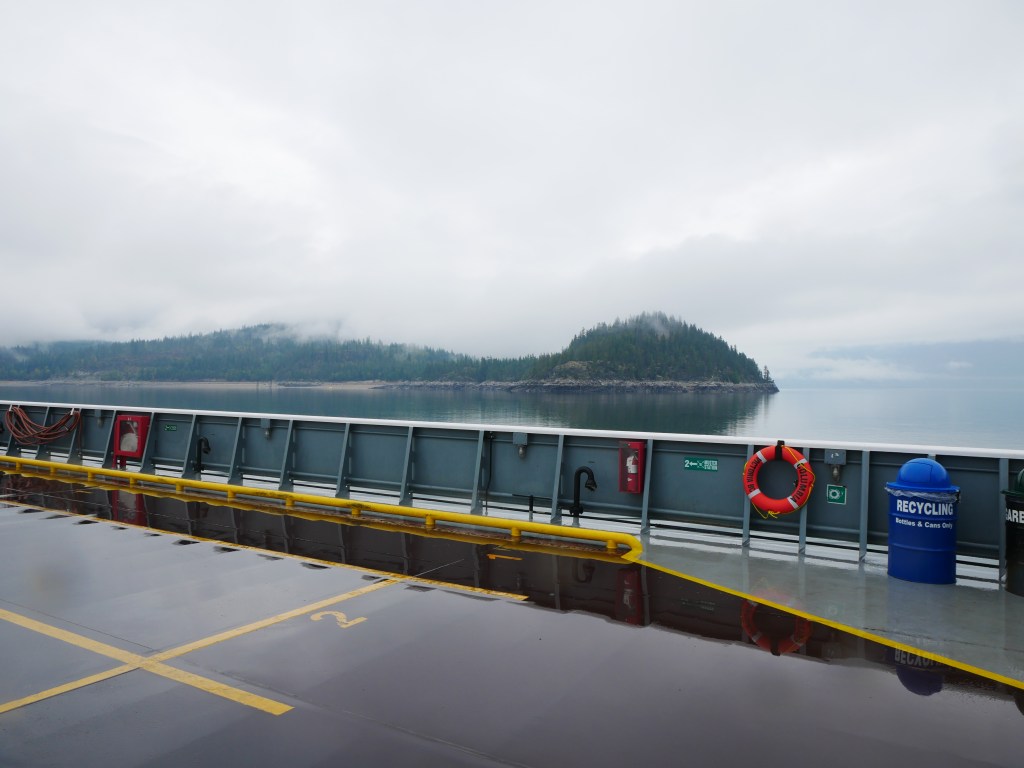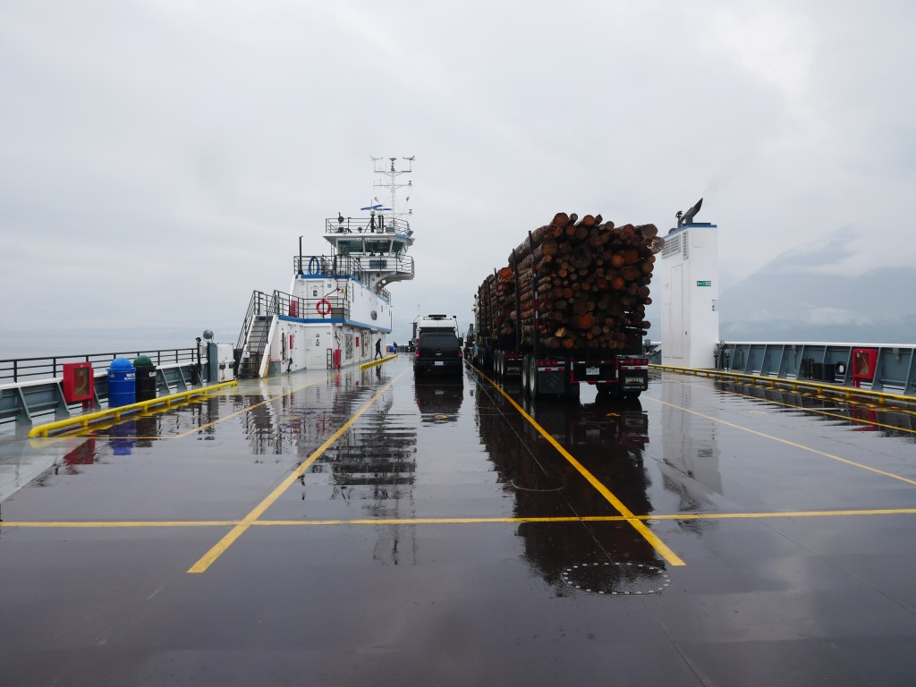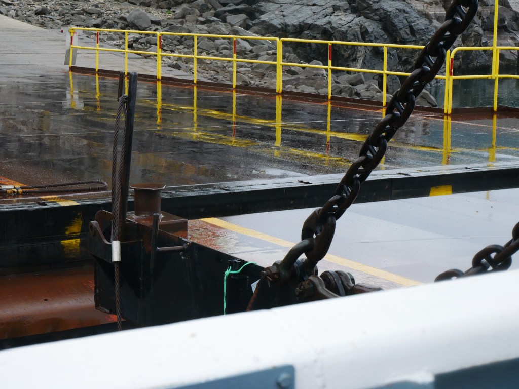 The Columbia carries B.C. 23 across the Columbia River about half way between Revelstoke and Nakusp.The Columbia can carry 80 vehicles and 250 passengers.Staging Area at the Shelter Bay terminal on the West (Revelstoke) side of the crossingLooking back up B.C. 23 towards RevelstokeInformational Signage at Shelter BayShelter Bay Landing from aboard the ColumbiaBluff next to the Shelter Bay landingColumbia is a very spartan but functional ferry.Builder’s PlaqueLooking Aft, an art piece by Kate Tupper displayed beneath the ferry’s wheelhouseCommunity Bulletin Boards. There is no passenger lounge on the Columbia, so the boards are simply affixed to the superstructure.The vessel has a chronic starboard list due to insufficient ballast counteracting the offset superstructure.Galena Bay (East / Nakusp Side) LandingThe No. 2 end faces Galena Bay, and the No. 1 end faces Shelter BayView North from near Galena BayShip and shore ramps at Galena Bay about to meetEmpty Car DeckColumbia docked at Galena BayThe ship’s starboard list is pronouncedAt 93.05 meters (305′ 3″), Columbia is the longest inland ferry in B.C., though the Osprey 2000 has a higher gross tonnage. Late September Upper Arrow Lakes sceneryView north from near Shelter BayOff-shore tie-up location near Shelter Bay. Back when there were two ferries on this route, one of them would tie-up for the night against these dolphins, with its crew being ferried to/from shore by the other vessel.Arriving Shelter BayLoading Traffic for another sailing to Galena Bay